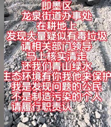 生态环境没有“试错空间”,耕地保护没有“缓冲地带”。这些疑似有毒垃圾多存在一天,村民的健康就多一分威胁,土壤的污染就多一分不可逆。我们强烈要求相关部门立即履行法定职责,拿出实际行动: